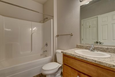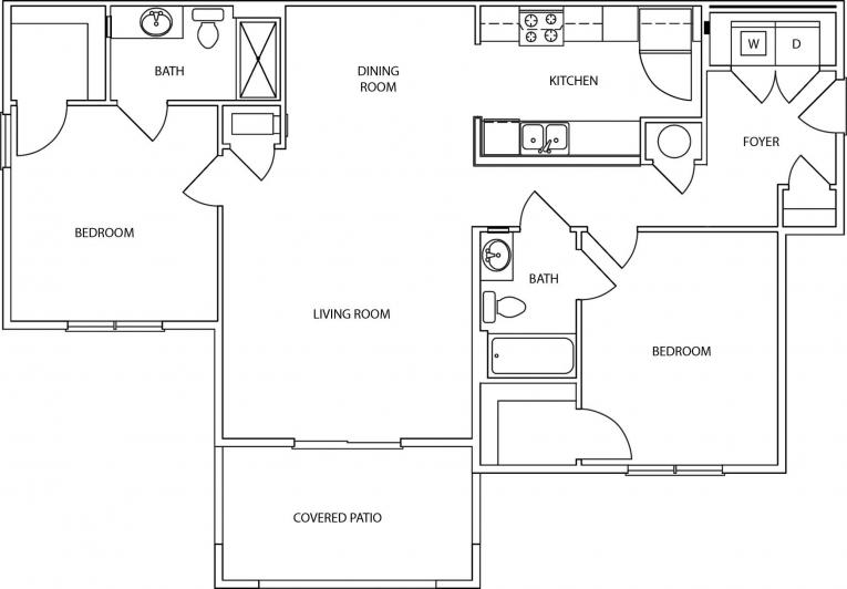 Our 2 bedroom, 2 bath unit offers a little more privacy, for either roommates or small families with the bedrooms being separate. With a larger-than-average 1218 square feet, there will be more than enough room in this open floor plan. This unit has a full-size washer/dryer, full kitchen appliance package, central AC, gas furnace, private covered patio, and also includes water, sewage, and garbage fees.
