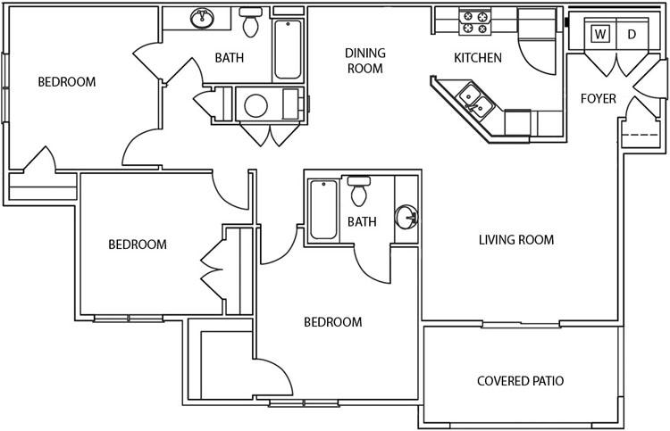 Our 3 bedroom, 2 bath unit will just about fit anyone's needs. This spacious 1453 square foot apartment also features a tray ceiling in the master bedroom. This unit has a full size washer/dryer, full kitchen appliance package, central AC, gas furnace, private covered patio and also includes water, sewage and garbage fees.